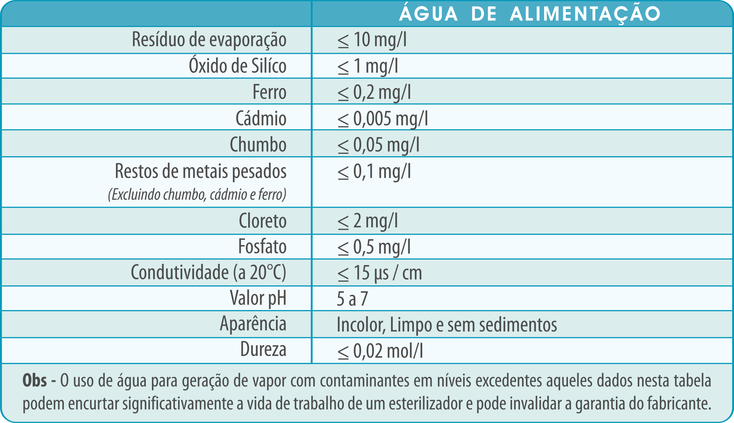 A norma européia especifica os limites de contaminantes para a água que será utilizada na autoclave durante o processo de esterilização.