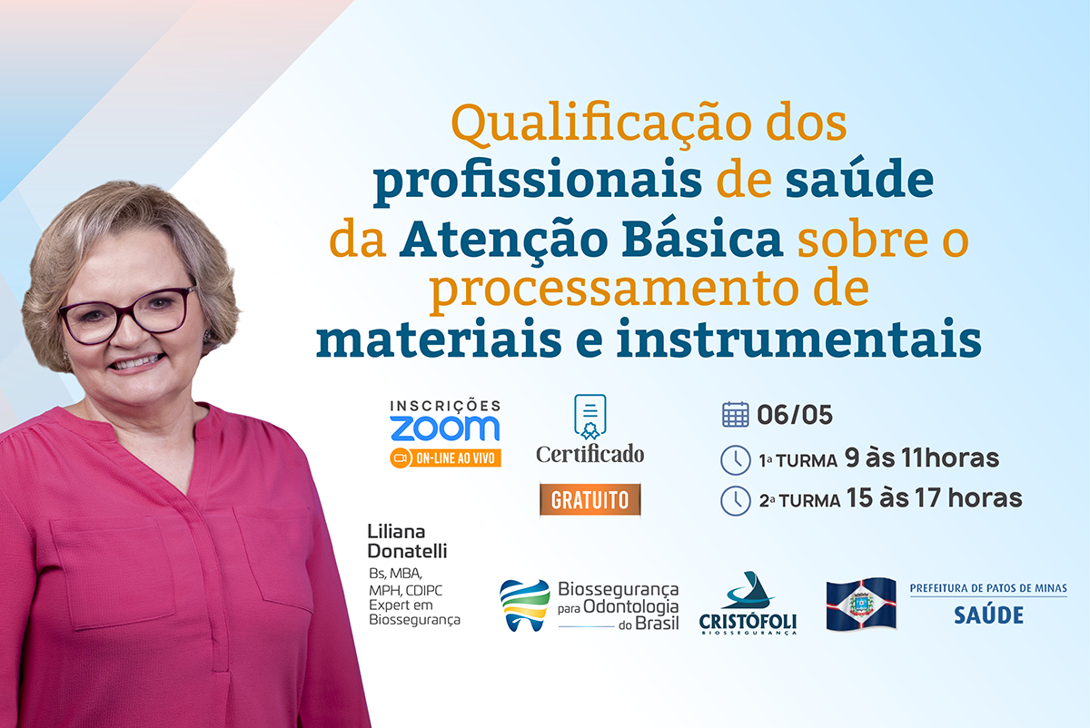 Aula online para Patos de Minas mais uma atividade do BOB - Biossegurança parara Odontologia do Brasil, patrocinada pela Cristófoli para qualificar os profissionais de saúde da Atenção Básica sobre o processamento de materiais e instrumentais. Aula On-line Biossegurança em Odontologia -Processamento de Artigos Realizada a pedido da Secretaria de Saúde do Município de Patos …