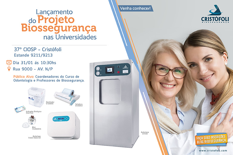 Nessa reunião com Professores de Biossegurança em Odontologia das Universidades ocorrerá às 10h30m no estande da Cristófoli durante o 37o CIOSP, Será apresentado o Projeto Biossegurança nas Universidades Cristófoli Objetivos: Incentivar a biossegurança dentro das universidades brasileiras. Divulgar informações, conteúdos, vídeos e material relacionado ao assunto. Entender as necessidades dos coordenadores das faculdades de odontologia para que …